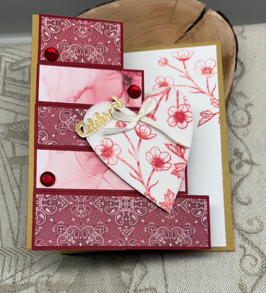 Made for the ModSquad challenge to use patterned paper and also for a friend whose daughter has had twins. I cut out a large heart for the background and then using a Spellbinder die called Layered Happy Birthday, I cut out some balloons from other PP and added them to the heart. Using an unbranded double stitch rectangular die I cut the main panel and added a small scrap of marbled paper on top. I fussy cut two matching little bears from another small piece of PP, after stamping them and colouring in certain parts. I popped them up onto this and added a small fussy cut fairy above. Stamped the sentiment which I also fussy cut out. Added a few small gems here and there. Stamps and card stock all from Gina K. Designs my main go to place for ideas and purchases.