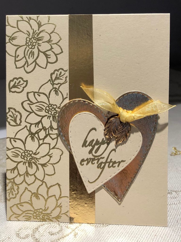 Beautiful, the gold embossed flowers with the gold heart…very, very lovely.