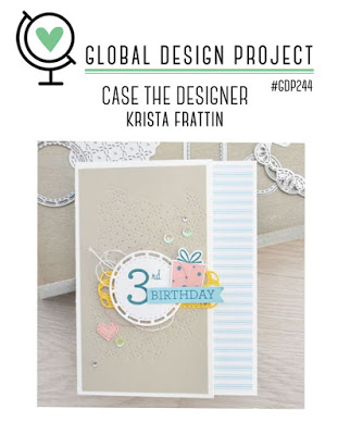 Another card that I managed to fit into 2 challenges today. It is always fun when I can do that. As well it is another cheerful card for a gloomy wet day. The GDP CASE example shows that the card front was cut and some pp was added to the back part of the card. The images were inspired by the Paper Player theme.