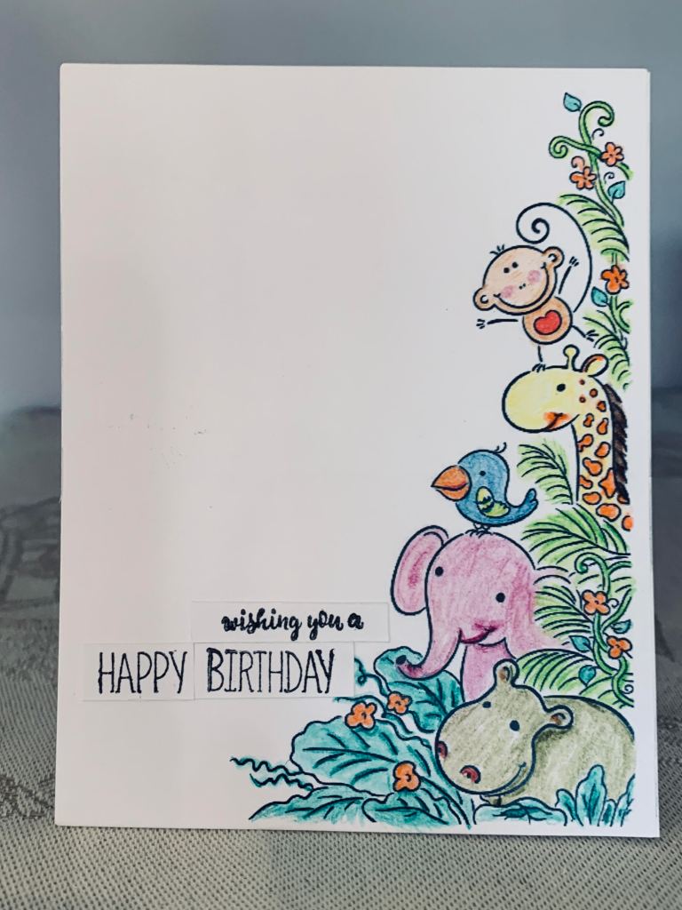 This cute digi was found on Pinterest as a freebie so I decided to use it for this challenge. I resized it a bit in CorelDraw and then printed it onto some cs. Using mostly Inktense pencils, along with one or two copics I coloured all the elements until I was happy with them. The sentiment is combination of several stamps from SSS which I put together after cutting each one to the correct size. I glued these to the card front. This was kept very simple and is for the most part a one layer card. I thought of adding some bling but decided it didn’t need any embellishment.