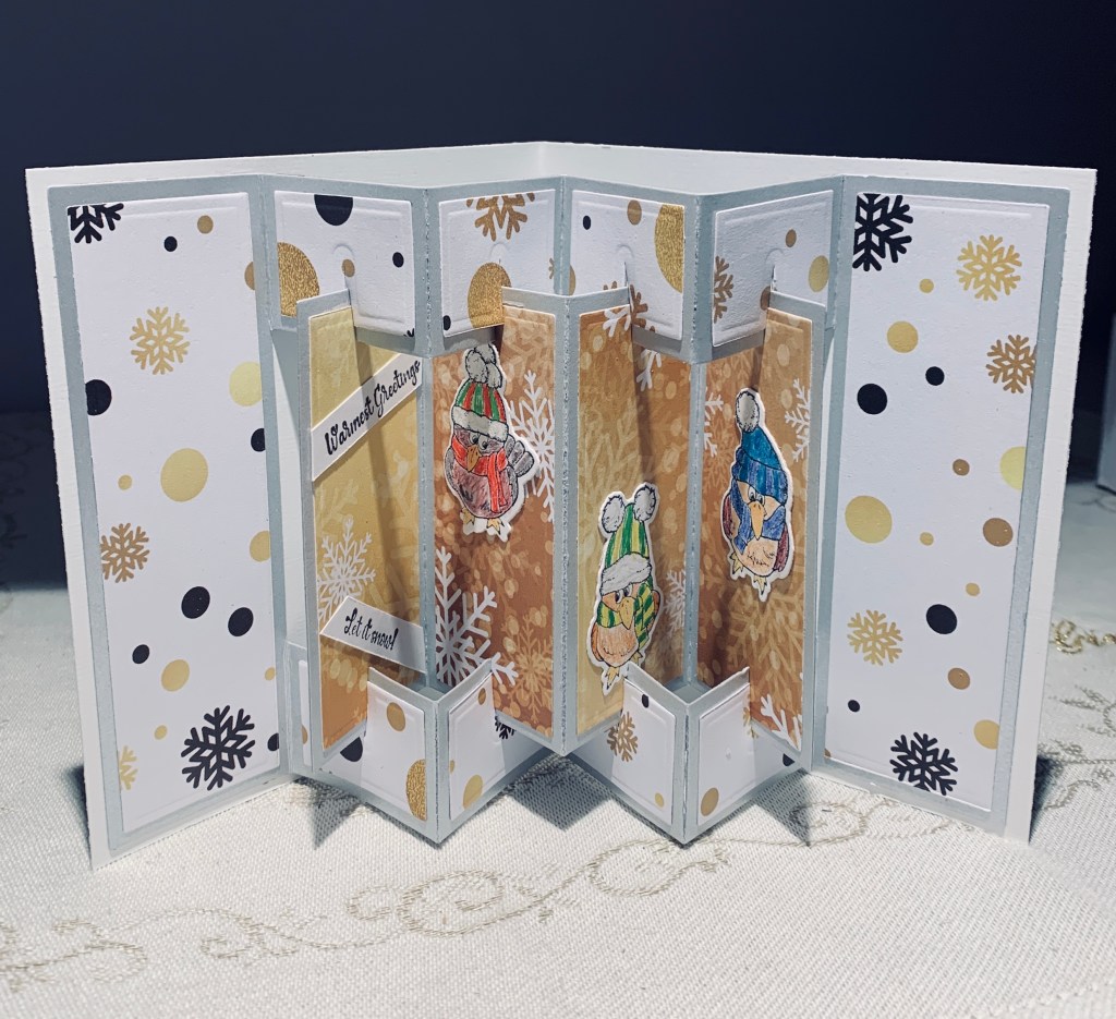 1. What a fun gift, and the cards you made with them came out great! That concertina fold is very cool, and I agree that it could also work well as a stand-alone card as well as on the inside. Good luck with your packing/move. Happy New Year!