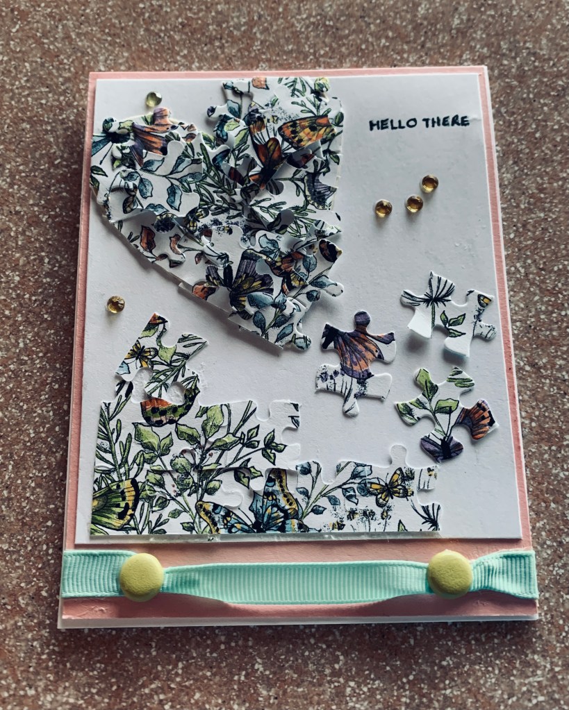 You are definitely having fun with this puzzle die. Clever with the heart card and love the butterflies.