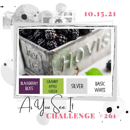 Thanks for the comment and the challenge. I used Distress Oxides and the green is called Pine Needles. I did heat emboss them all in clear. In retrospect I should probably have used Mowed Lawn as it may be a bit closer to the challenge colours. Too late now and the fun is in the creating and participating, not in winning a challenge.