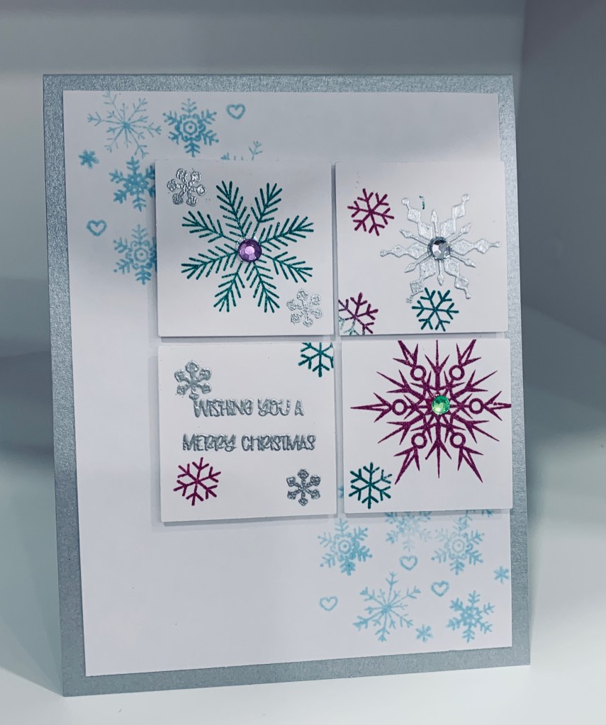 I really like this one Johanna. The snowflakes are beautiful and the colors are so fun. The base panel looks like snowfall behind the pretty squares.