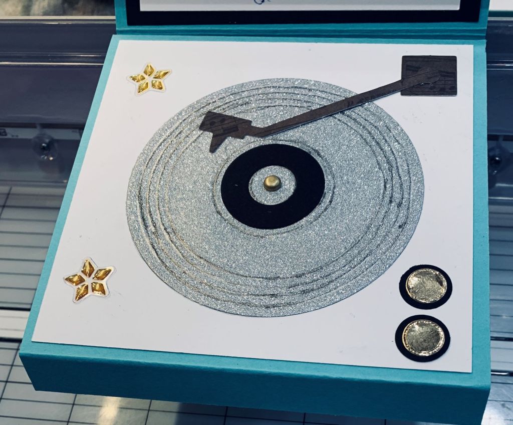 This card has been made for an ex boyfriend, who has remained in my life as a good friend. He is a classical guitarist as well as being a doctor and I thought making a card that looks like a record player decorated with a classical guitar was perfect for his birthday. We go back many years so the nostalgia of a real record player works well for both of us.