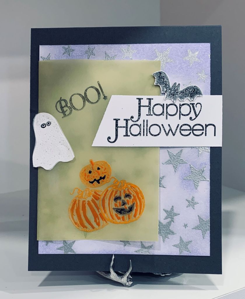 1. Lovely card! I am making Halloween cards as I was asked to for the assisted living center, but I normally do not create Halloween cards. I like the stars on your card.