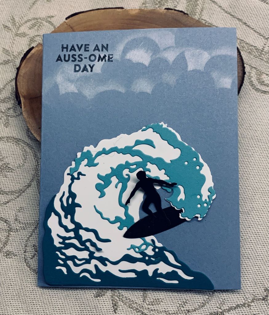 Wow, that is an awesome wave – fascinating dies! Love that you get a surfer to add, too, lol, and great color choices! I wish I had an answer on the clouds – I need help in that area myself, lol… We have a cloudy border die that I use these days to sponge off of… Thanks so much for playing at As You See It!