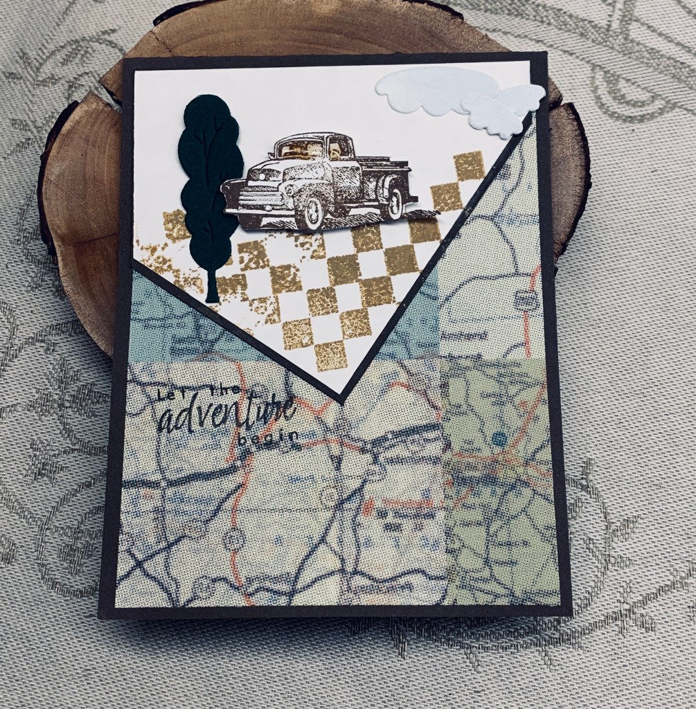 The angled panel is a jaunty twist to a lovely vintage classic. LOVE that map paper – it’s perfect paired up with the old truck. Thanks so much for joining in with our 300th Challenge at As You See It. It’s always a pleasure to have you join us. 🙂