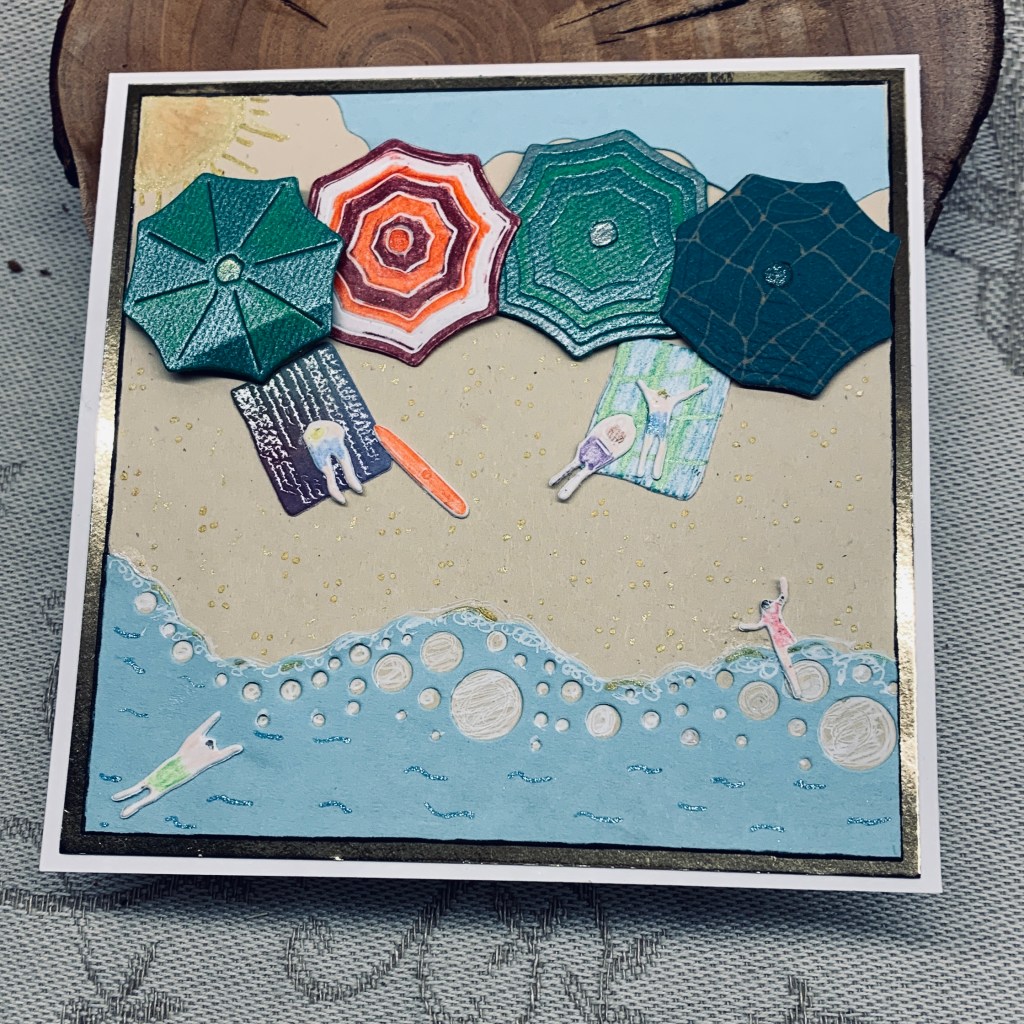 Such a fab beach scene! Those umbrella dies are lovely and the sea is so effective. Looks like my idea of a relaxing day – I’d be sat there with a good book! Thanks for joining us at As You See It challenge