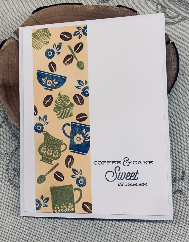 This is a great way to use a coffee themed card with a panel. The sentiment is sweet.