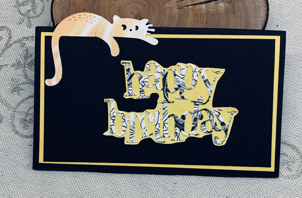 The cat looks so cute sitting on top of your card. And I love the black with the yellow and white.