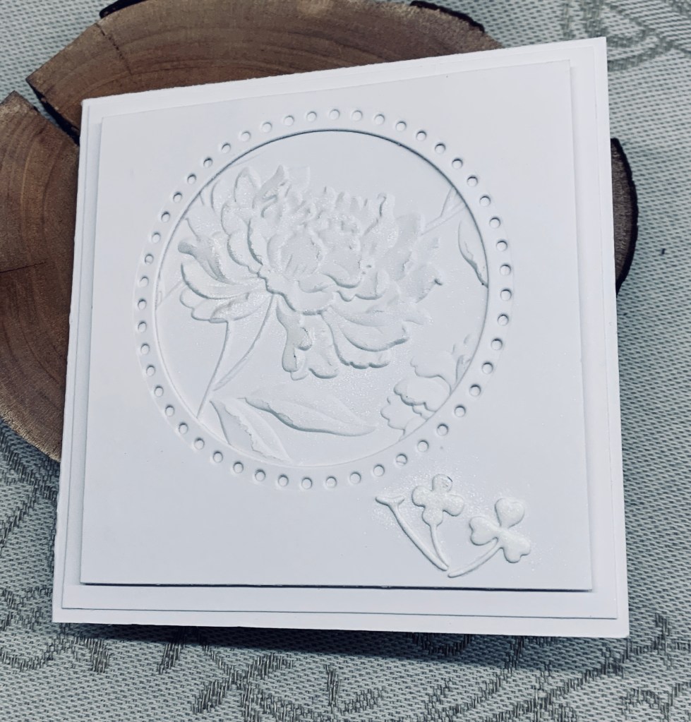 CYHTP has a challenge with the twist of using circle or squares In a way this card uses both, as it is a small square card with a die cut circle from StampinUp. The folder I used is an unbranded one and I used only a portion of it to fit behind the circle. I added some small fallouts underneath, but no sentiment as yet. I could have coloured the embossed piece but chose to keep this white on white, but I did add some perfect pearl powder to it, which never shows on camera. In reality it gives a subtle sheen. I made this card over a week ago, but decided to wait for a suitable challenge before posting it. I quite like the end result and I also like that it is fairly CAS. I do believe I am getting much better at CAS designs than in the past.