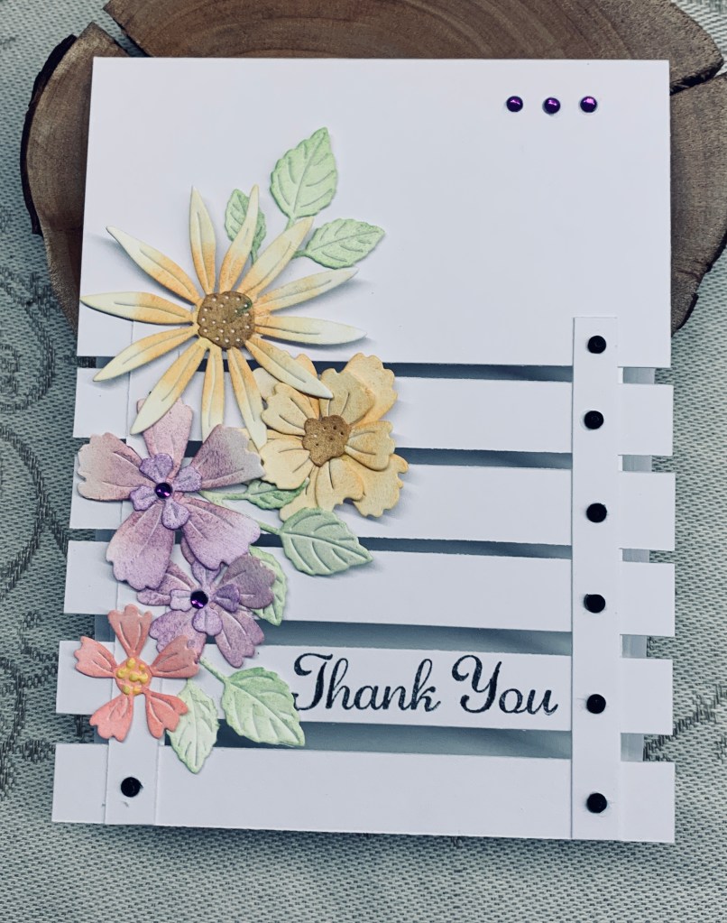 Your lattice card turned out beautifully! The intricate design with the Memory Box flower dies and the lattice structure creates such an elegant and dimensional look. The addition of the black gems as nails on the lattice and the pretty gems as flower embellishments adds the perfect finishing touch. Well done on creating such a lovely card!