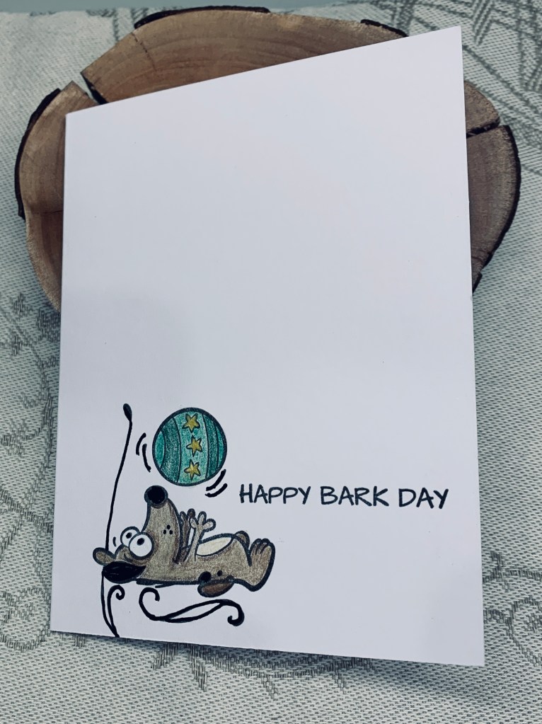 Fabulous interpretation of our sketch. Great job with the Prisma pencils. Love the pup on his back playing with the ball. Thanks for joining us at AAA Cards.