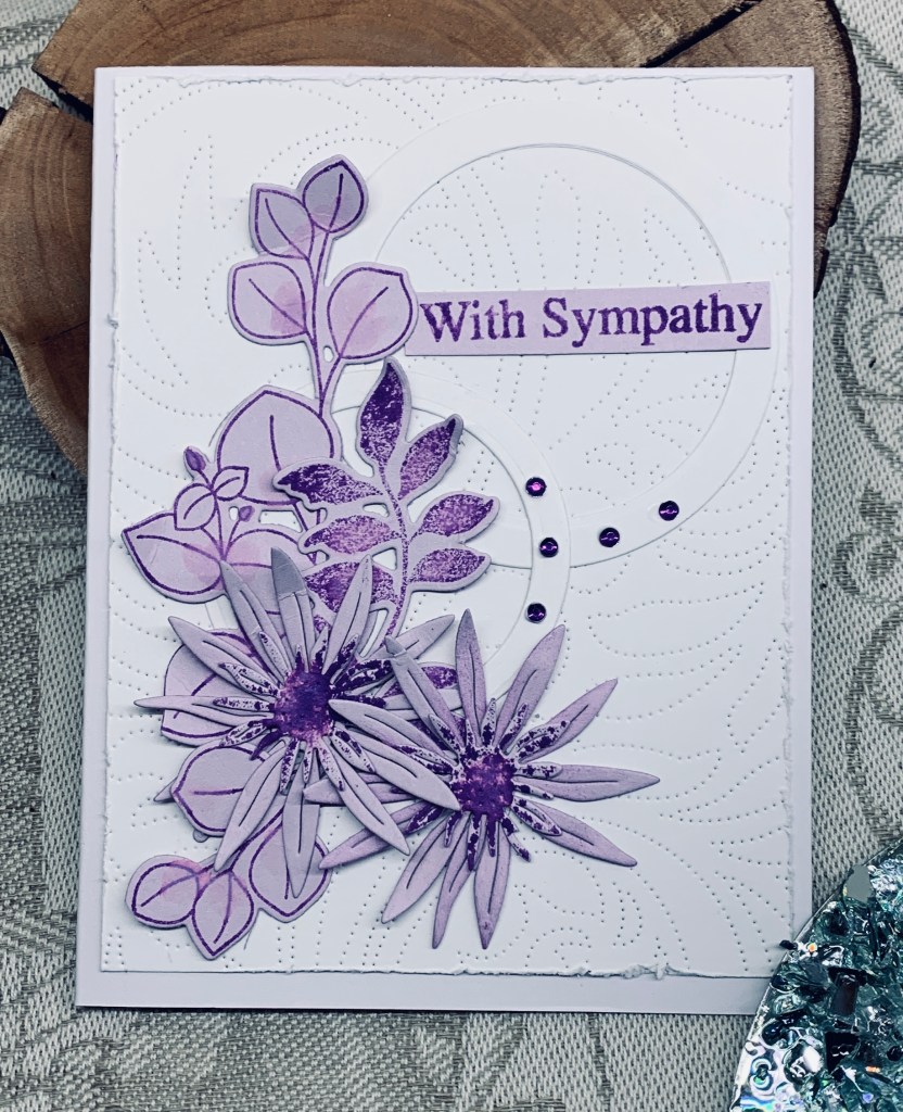 I used a border die, by Spellbinders, to cut the curved shape floral paper and rounded the corners of each piece too. The folder is from Memory Box Open Studio. Floral die cut is an unbranded one, cut from another StampinUp scrap that was a close match to the colour in the PP flowers. Sentiment is from a Forever In Time dollar store stamp set which I heat embossed. I also went around the edge with some ink after it was cut with a Hero Arts infinity Oval die. Embellishments are from YNS, and I’m still sad they closed their doors.