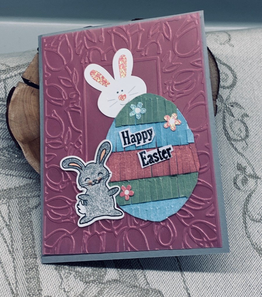 Having recently purchased these Decorative masks from StampinUp, they’ve been languishing on my desk waiting for me to use them and I finally got around to playing with them yesterday. For some reason the colours at As You See It were stuck in my head so this first piece was the result of using the first 3 masks and colours. I hadn’t planned on a second entry but as it works it will be added and it will also be added to the April 2025 Stencil Fun Challenge at Crazy is our Fame – Stencils are our game. Quite by accident it meets the pattern twist, which is fun for me. As I don’t do a lot of stenciling I wasn’t too sure if I liked the result at first. I had some fall outs on my desk from a previous project and thought I could use them but they kind of disappeared initially. After a bit of thinking I pulled out an Altenew stamp and die set and used one of the leaf stamps, which I stamped in green, and then heat embossed clear. After adding some foam tape to the back I placed it on the stenciled piece but didn’t like it much. More thinking and I cut a panel of vellum and then added the leaf to that. The fallouts were added on top and I attached it all to the stenciled piece. I stamped the sentiment, heat embossed that, then added it to a black piece and attached as you see. As I didn’t have the colour Peach Pie I used Tea Dye ink and edged the card front with it before adding the other piece on top. Stamped the sentiment in the same colour ink and heat embossed clear. The vellum mutes the background just enough for the rest to work and I’m happy with the solution.