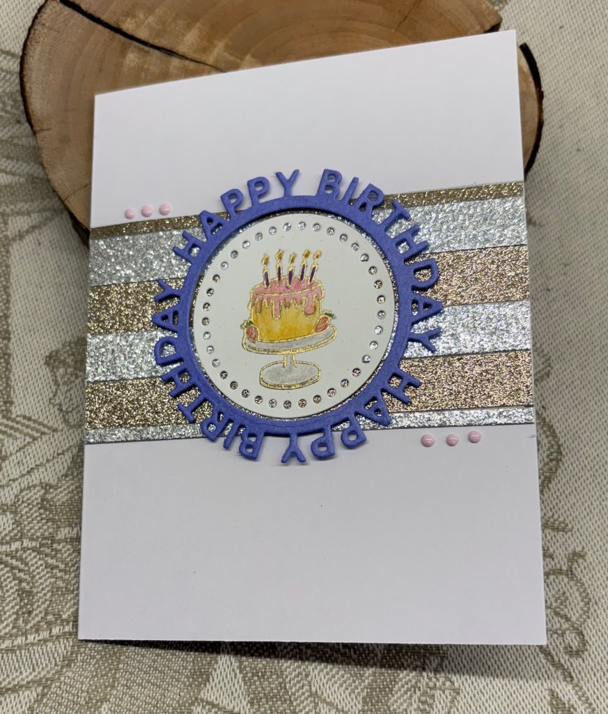 This card has been created with two challenges in mind, the first is at As You See It, Challenge #352 – The Shape of Things to Come, and my fill in the blank is circles. The second is at Seize the Birthday #309-Food and or Drink and you can see I chose a cake.