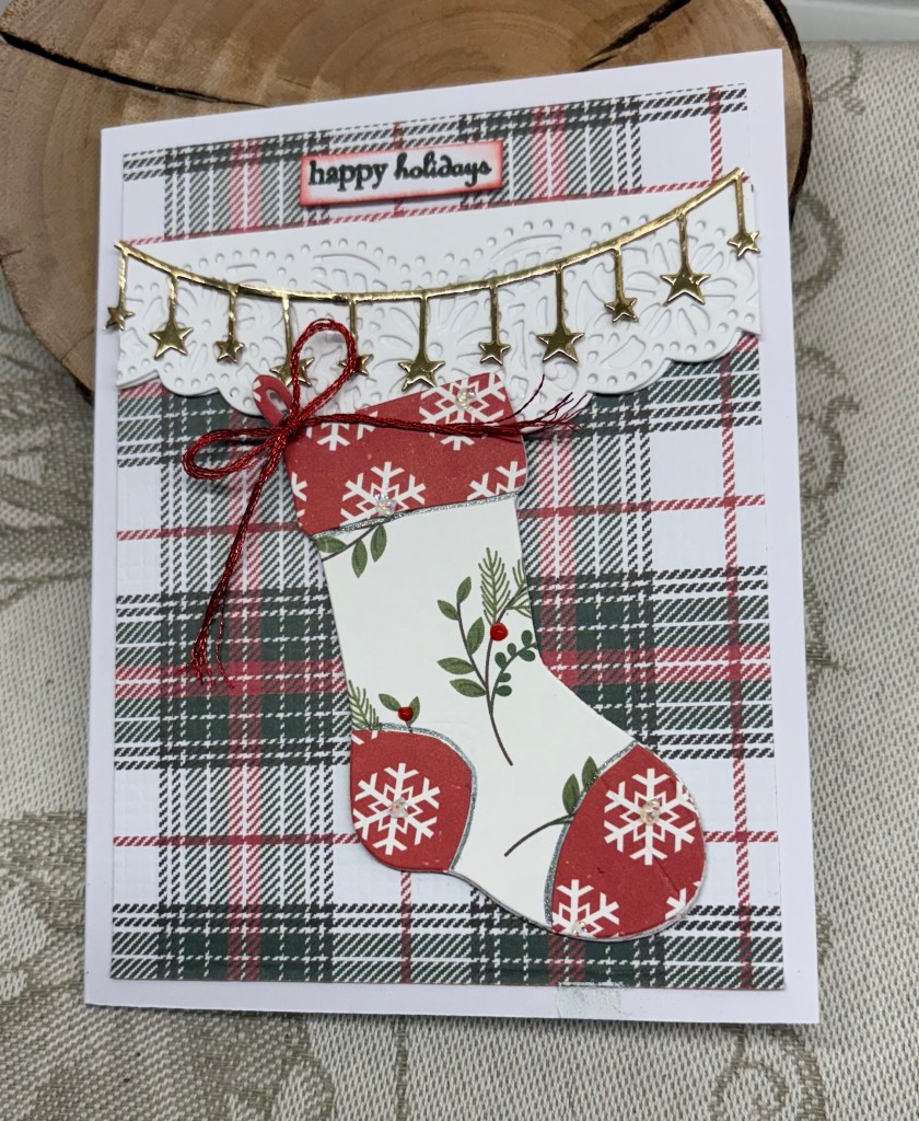 September 2025 Peace On Earth Challenge #95 which is an anything goes Christmas challenge although there is a mood board for anyone needing a boost for ideas. I had the stocking already done as I was playing with this die a few posts ago, and I decided to use it here.